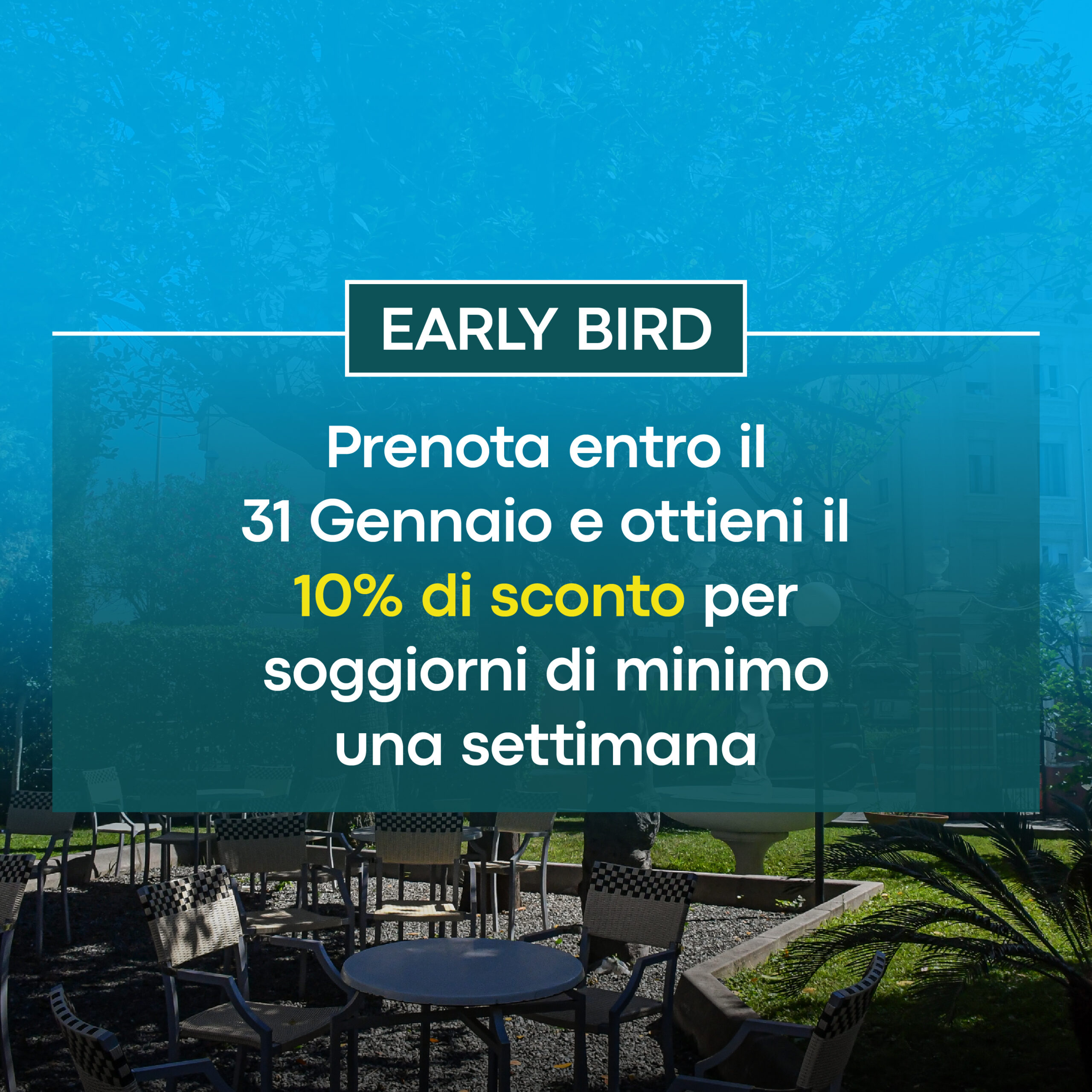 Per chi desidera organizzarsi in anticipo, è attiva la promozione Early Bird: prenotando entro il 31 gennaio 2026 è possibile usufruire di uno sconto del 10% su soggiorni di almeno una settimana.